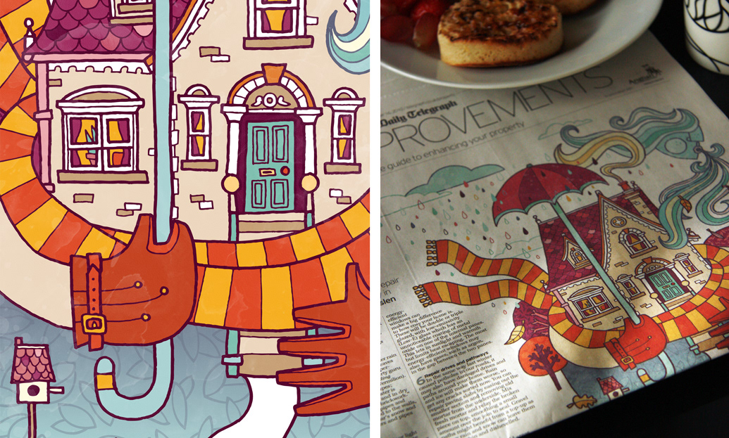 Cover for the home improvements section of the Telegraph. Accompanying an article about preparing and protecting your home from the coming autumn & winter weather.