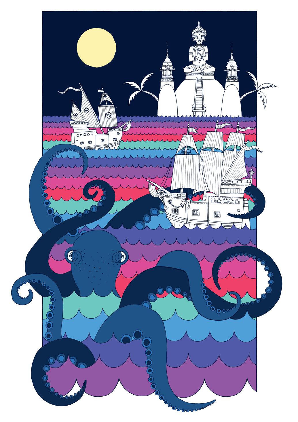 Personal illustration of once unchartered waters and the exotic beasts & lands yet to be discovered there!