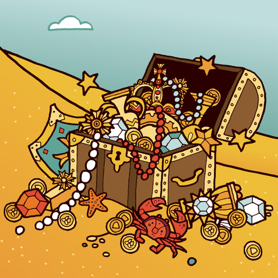 Treasure Island themed webpage for opticians - Specsavers. As a staff incentive to sell more contact lenses the company launched this promotion whereby employees could log in to the website with a chance to win prizes by clicking on different parts of a treasure map. The interactive webpages which were later animated by Unigraph Design. The theme was treasure island with various nods to pirates & treasure hunts.The winning treasure chest being full of treasure and the unsuccesful one bones and moths. See the treasure chests in action here & here.